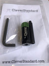 Chain Breaker Clever AL Green Specification Weight: 46 grams Size: 17 mm diameter, 43 mm length Material: Aluminium body & cap with, steel pin Handle Material: Aluminium The design locks the chain into position inside the barrel, a safety cap threads into place to keep everything held tight. Then you simply drive the pin through! It’s probably the easiest to use chain breaker you’ve ever seen! The Clever Standard Chain Barrel is a patented chain tool is one of the easiest chain breakers on the market. The Chain Barrel is so easy, that it basically allows the user to essentially "break" the chain with your eyes closed. The Chain Barrel breaks a link on nearly any multi-speed chain, as well as a few basic single-speed chains. Green (*Note, current version is not compatible with Shimano XTR 12 speed chains or Sram 12 speed Road Chains. We're working on a new model that will be compatible.) The design locks the chain into position inside the barrel, a safety cap threads into place to keep everything held tight. Then you simply drive the pin through! It’s probably the easiest to use chain breaker you’ve ever seen! Included with the Chain Barrel is an aluminium handle that will provide additional leverage. As an added bonus, the tip of the handle doubles as a valve core wrench! Available in colours including, red, blue, green, pink, orange, purple, or the classic black. The Chain Barrel is small, easily nestling in a corner of your saddle bag, jersey pocket or hydration pack. Required tool for usage: 5 mm hex. *Note: Tool may not work on new 12-speed XTR chains & new SRAM 12spd chain (they have a different shape to the body)